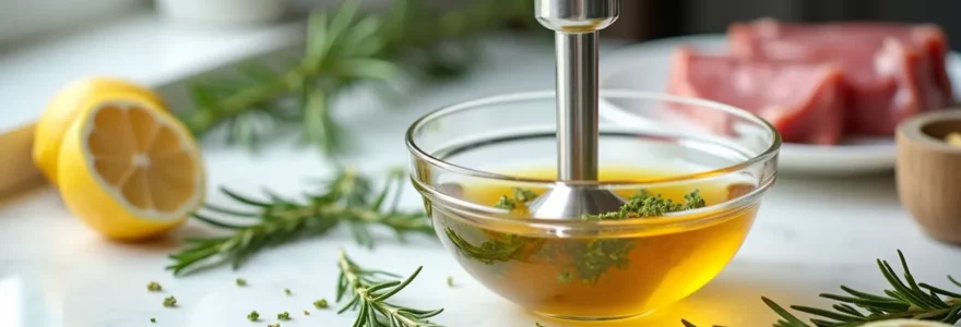 Le mixeur plongeant ne se contente pas de mélanger les ingrédients. Il transforme radicalement la structure moléculaire de votre marinade en créant une émulsion homogène où huiles et acides fusionnent en microgouttelettes. Cette transformation mécanique accélère la pénétration des saveurs dans les fibres musculaires, réduisant drastiquement le temps de macération nécessaire.